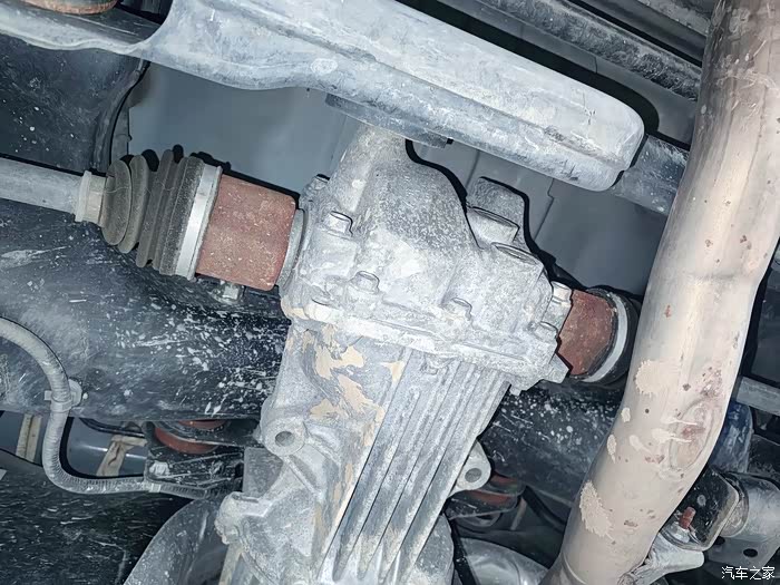 这里就是后桥的差速器了,两侧的半轴万向节和护套表面都比较干净没有油脂覆盖,没问题。