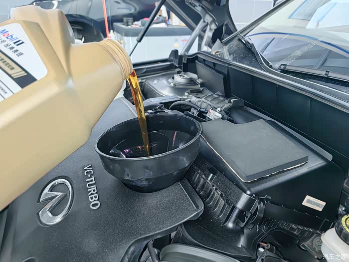 放出机油,5000公里也是很黑的,原厂的机油基本性能没问题,但是真要扛住1万公里还是有点难度,保险起见5000公里就换。