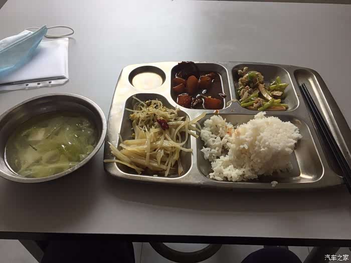 售后给了一张餐券,伙食虽不能和BBA比但是总的来说还是可以的荤素搭配,一人一个有个隔档里面吃安全卫生。