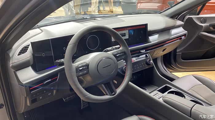 内饰方面,整体风格还是偏向家用车多一点,采用由双12.3英寸组成的一体式连屏设计并增加了曲面的视觉效果,全新的三幅式方向盘,尺寸很大,握感还是ok的。同时,该车采用了贯穿式空调出风口,提升车辆设计感。同时,该车将配备大尺寸天窗、12扬声器BOSE音响、主驾驶座椅多项调节等,从而增加该车的驾乘感受。