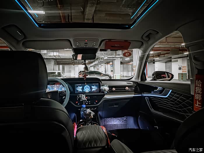 车内饰还是比较年轻的,晚上氛围灯也很好看(自己后期还安装了天窗氛围灯,氛围感加满)