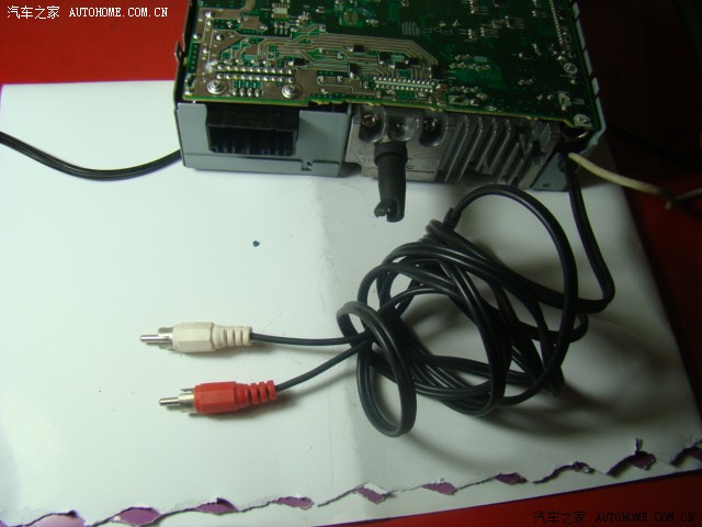 试音后发现没有重低音信号输出,现在从CD尾线插上从左到右的5、6两组插孔内引出后门喇叭线,直接接到音频信号高转低转换器,和低音炮连接