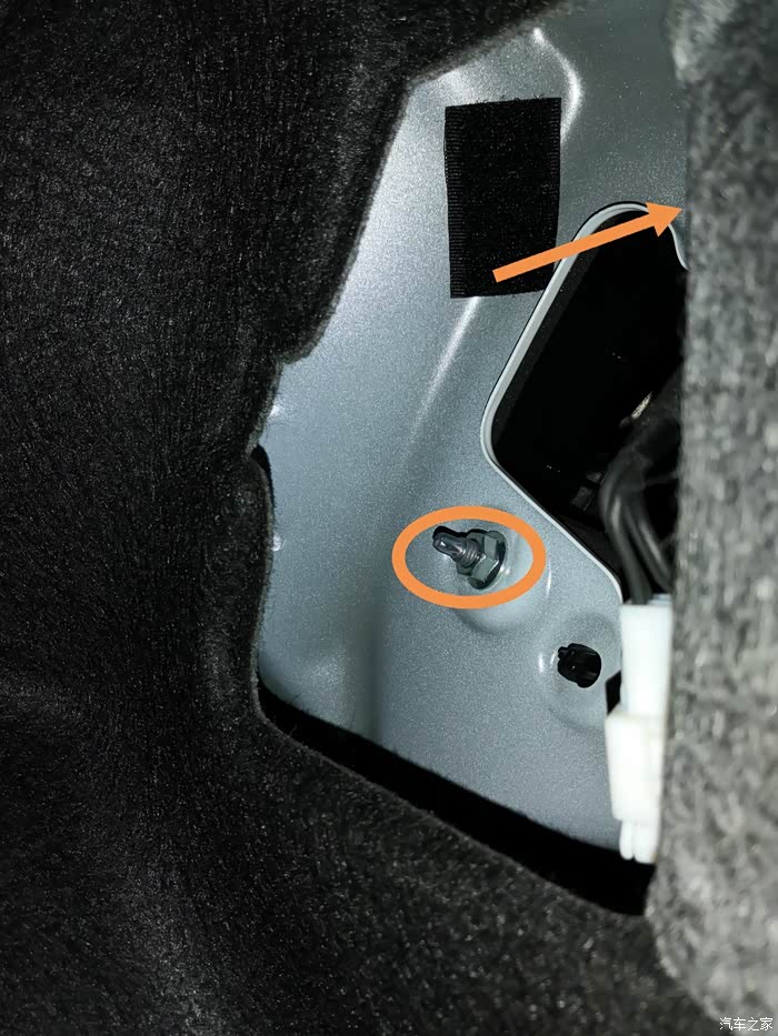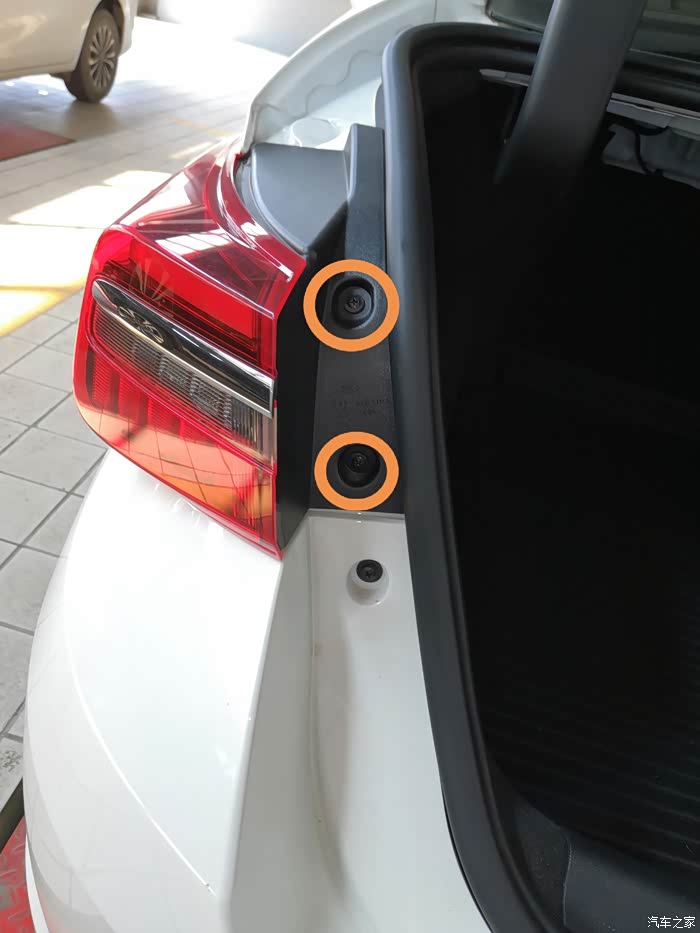 第一步:需要拆下后尾灯,打开后备箱,尾灯后面都留有两个面绒盖。