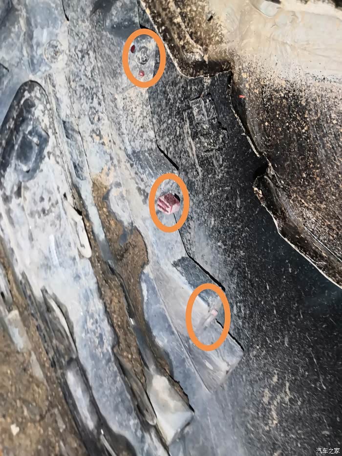 第二步:要拆原车的后杠灯了,需要拿个垫子,垫在地上,人面朝上,躺在车后屁股车底,拆下圆圈标记的两个螺丝,和一个卡扣,本人150斤,不需要把车后屁股抬高,轻松进出后车底,就是拆的时候,注意沙子别掉人眼睛!车底还是很脏的。