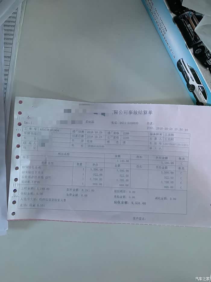 经过后来检查前!保险杠前面的网格里面的水箱空调过滤器大灯雾灯都不同程度受损……我不得不说我很***保险公司不开心了刚给我修好的车没两天又这样真是服气!我也需要反省自己的失误!