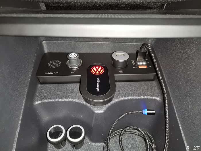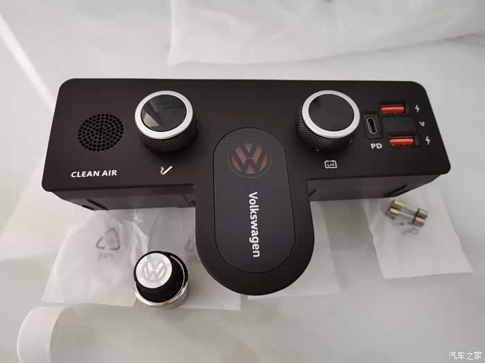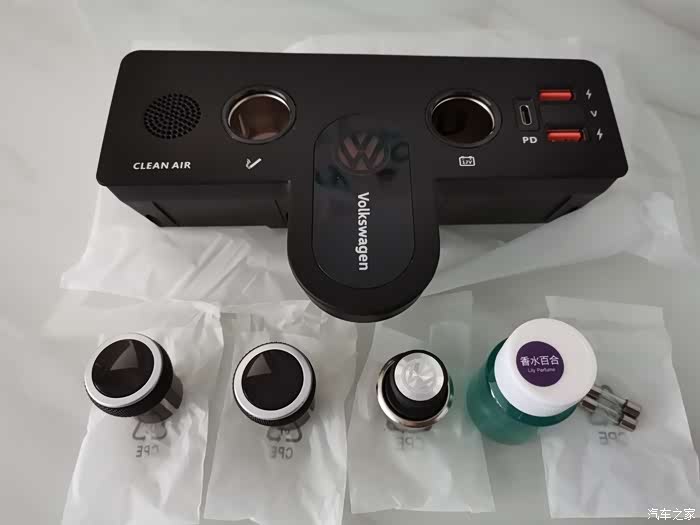 配件比较丰富,两个装饰盖,一个固态香薰,送了两个保险丝,还有一个带大众logo的点烟器
