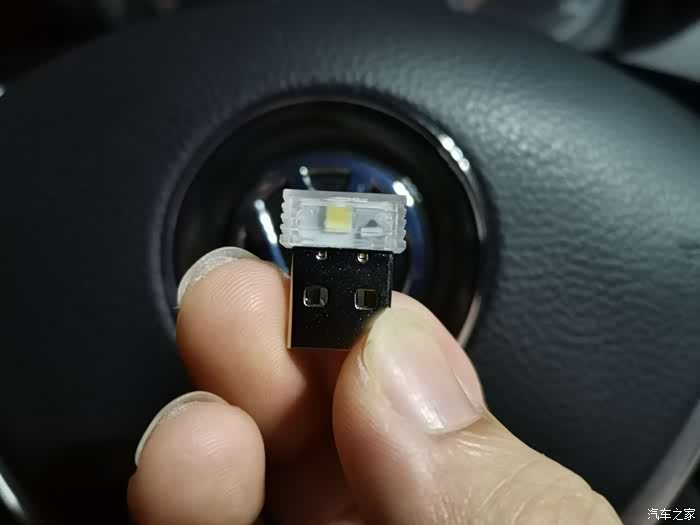 直接插在USB车充上,通电点亮感觉光线不均匀,离右侧近,右侧更亮一些,不完美