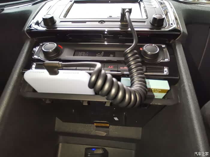 上车,打开原车点烟器的盖子,按住盖子把车充直接坐进最内侧的储物格里,之前这里也就能放两包小湿巾,这回放上专用车充显得整洁多了,空间被合理利用