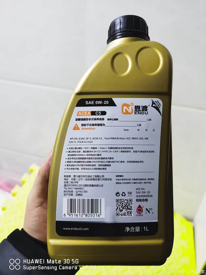 使用的机油,恩渡C5 0W-20,这款油检测过,各项指标很不错,论坛上搜索关键字“机油送检 恩渡”即可查看详细数据分析,使用的机滤为优冠AH158,空气滤芯为优冠AK817