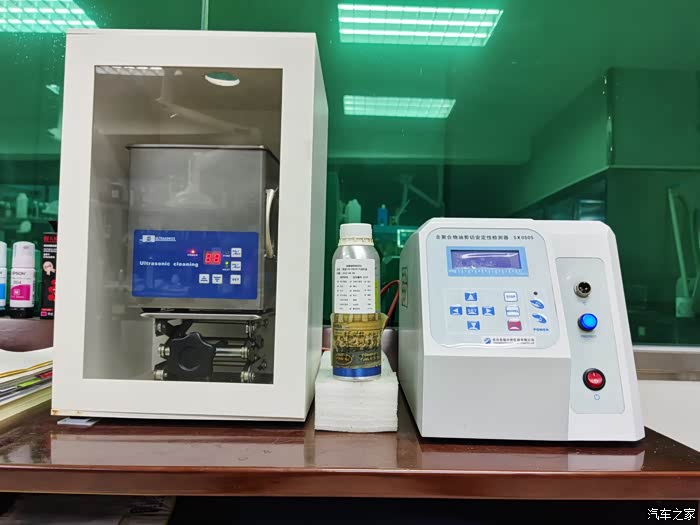 ,继续废油检测。通过检测用过的废机油,可以了解机油的衰减情况和性能余量,从而为不同的发动机定制一个科学的换油周期,也可以从一些数据判断发动机是否有燃油稀释、过度磨损等问题。