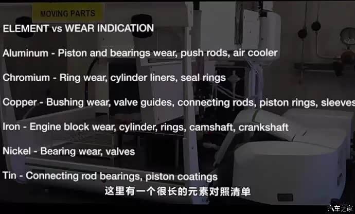 ,继续废油检测。通过检测用过的废机油,可以了解机油的衰减情况和性能余量,从而为不同的发动机定制一个科学的换油周期,也可以从一些数据判断发动机是否有燃油稀释、过度磨损等问题。通过废油金属元素分析,分析磨损下来的铁、铜、铝等金属元素含量,可以直观的判断发动机各个部件磨损情况以及空气滤芯的过滤效果等,这也是美国流行的检测方法。