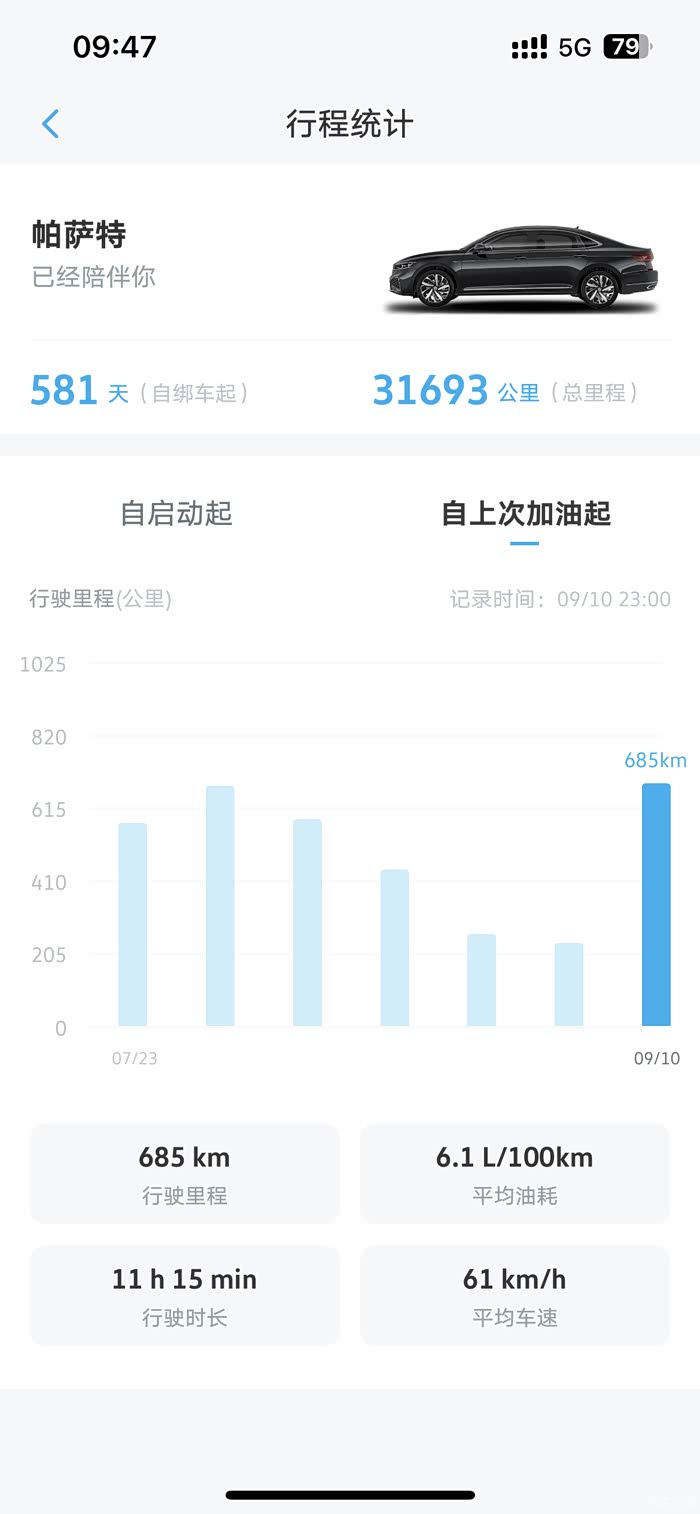 全程车上4个成年人,没有行李。685公里平均油耗6.1升,平均时速61公里每小时。