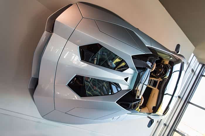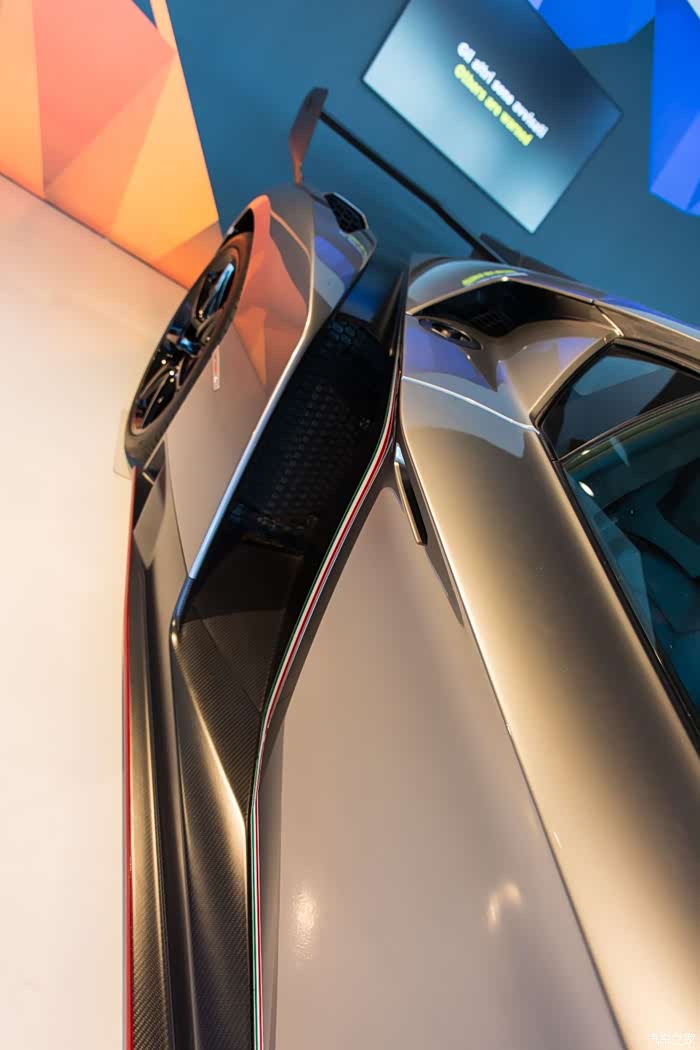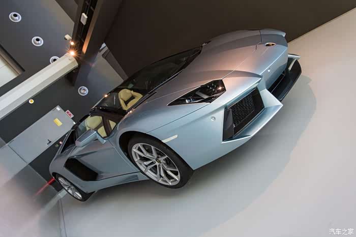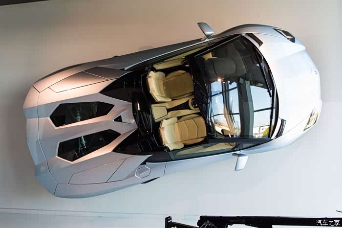 Aventador 霸气的趴在墙上,像一只巨大的蝙蝠。“蝙蝠”正是上一代兰博基尼旗舰超跑的名称,不知道这样的展示方法是不是暗示向前辈致敬。