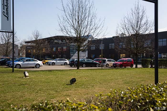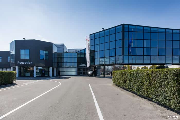 在老办公楼左侧,一排深灰色建筑是新办公大楼和研发中心,兰博基尼的众多黑科技诞生于此。