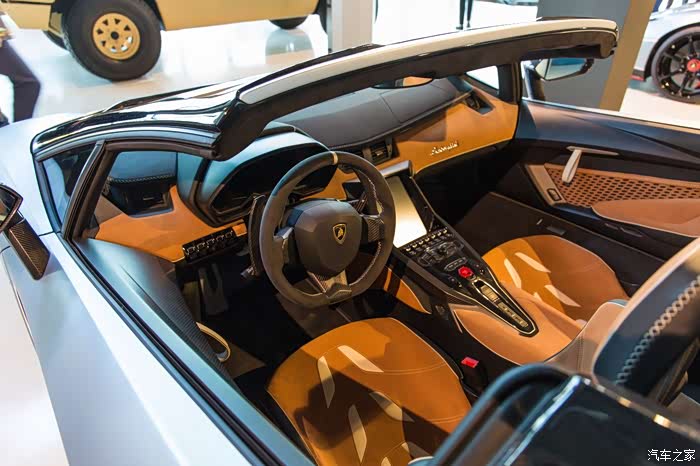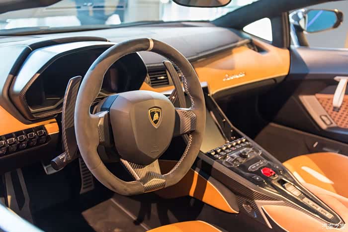 棕色内饰更加符合兰博基尼的气质,车内设计犹如战斗机驾驶舱。