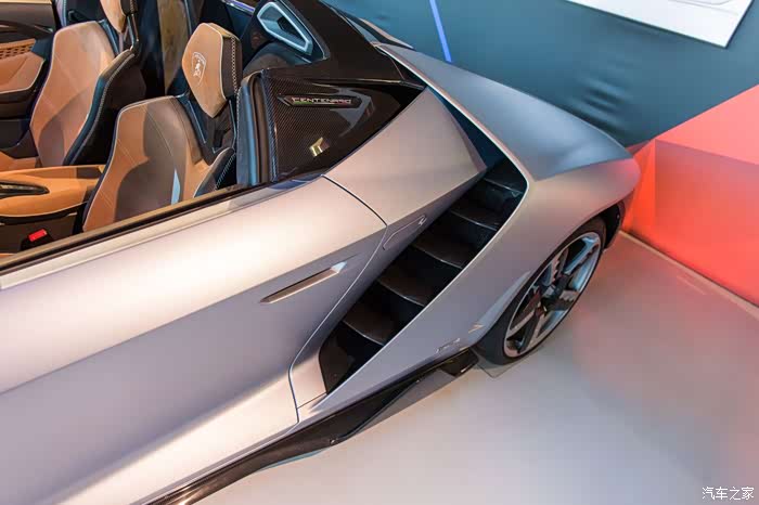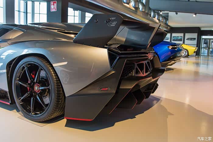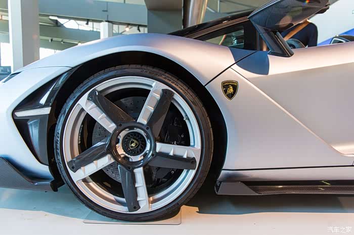 展厅里这台是后来推出的敞篷版 Centenario Roasder,产量也只有20量。虽然骨子里还是一辆大牛,不过更加科幻的碳纤维外壳和更稀有的保有量已经足够打开富豪们的钱包。