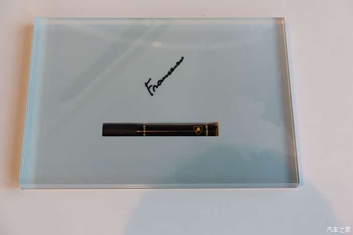 教皇签字时所使用的兰博基尼钢笔一同被装裱起来。