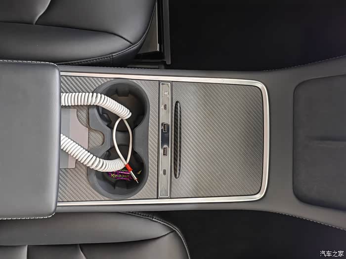 ▲扶手箱贴面、扩展坞、水杯固定架与大功率充电线