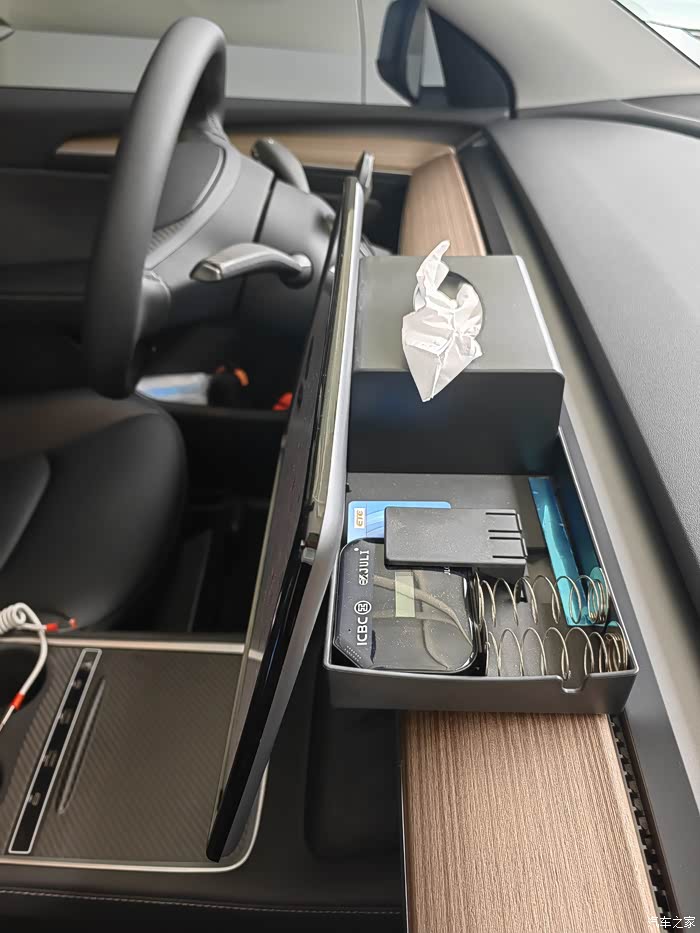 然而,由于一情原因,成都从9月1日下午6:00起进入全封闭生活状态,直到19日晚才结束,所以我的车就只有一直停在地下停车场。正好利用这个时候段,把之前在网上淘好的装饰物件给折腾上去。 简单说下弄了哪些:1各种垫子:前后备箱垫、后行礼箱(后面下层)、转角盒子加盖、后排靠背垫。2各种转角保护角。3各种储物盒:主驾副驾座下储物盒、中间扶手箱各种内隔、后排垃圾箱。4各种防护罩:地板出风口防护罩、前进风口防虫罩、空调进气口网罩、机盖隔水条。5各种装修面板:方向盘+扶手箱台面+左右操作档杆+四门把手+前翼子板摄像头处均加了真干碳纤维保护饰条或饰板。6扶手箱加装电源扩展坞。7大屏保护膜、大屏后置物盒。8方向盘后手机支架。9原厂前轮挡泥板。10千斤顶橡胶垫。