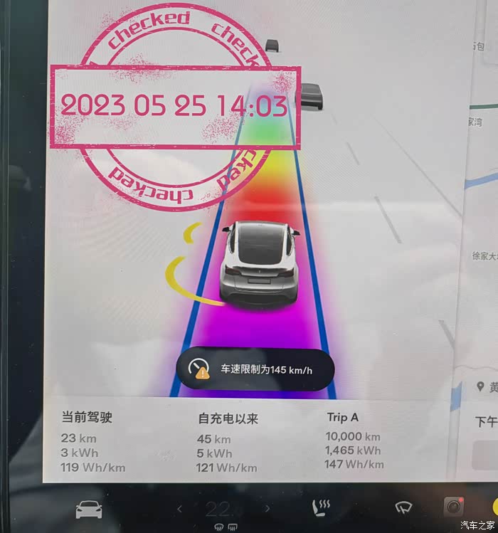 关于导航,相对【手机高德】导航而言(我也没有使用过其他新能源汽车的车机导航,所以没有发言权),特斯拉车机自带的确实槽点太多,或许我的容忍度高点,觉得也并不是一些人所言的一无是处,我在单次单边50km里范围内均使用车机导航,此外才使用手机高德导航(专门在车上放了一个淘汰下来的旧手机吸手机架上,平时放手套箱里)。试过毛豆投屏投手机导航到大屏,感觉不方便,不好用,不丝滑。