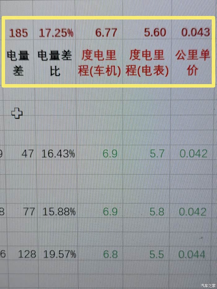通过上面三组数据,可以计算出每一度电可以跑多少km:一个以电表度数为基数计算,稍小些。一个以车机电度数为基数计算,略大点。进而计算出平均每km的用车成本是多少钱。
