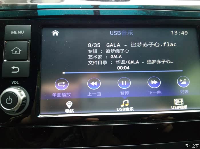 这个导航是通过AUX输出音频,使用增加的功能就要切换到AUX才有声音,不然只有导航画面。原车界面与导航界面必须通过多功能方向盘切换,要是能通过屏幕按键切换就好了!