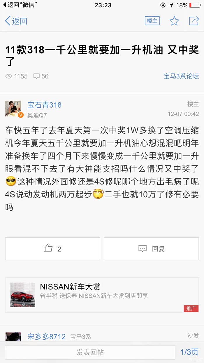 目前数据我统计下来是这样的!新款320发动机基本解决了烧机油问题。316发动机烧机油普遍。