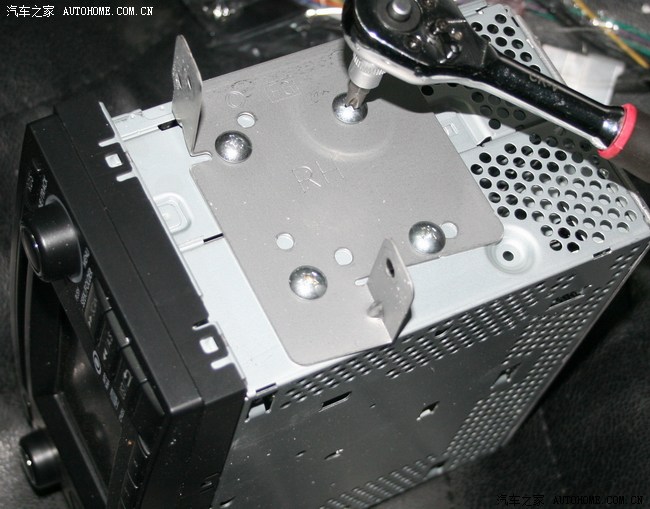 因为要用原CD支架对位打孔,将花冠的CD和森林人的CD侧放,摆齐,前端以操作面板后面的边框为准,以确定CD支架摆放的前端位置和高度,做个记号。然后将支架移到森林人机身上来,按照已确定的前端位置和高度,摆放好后,对应CD机身的螺丝孔的位置,在支架上作个记号。一边有二个孔就足够了,然后拿支架去钻孔,能穿过螺丝就行。因为搞得太晚,没拍照。