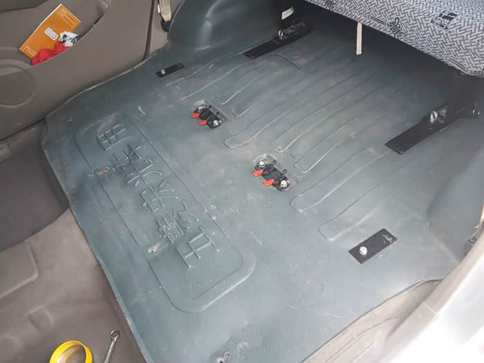 后排座椅安装上了,仔细看螺丝的地方,是3折叠的,中间那个双螺丝的,是中排座椅的后腿卡扣,前腿是个折页