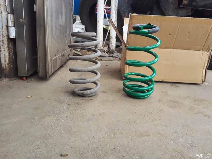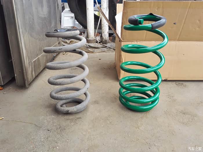 我前天又换了一款拆车的二手后弹簧,也是淘宝拍的,得自己切下去一圈,要不太高了,其实现在也高。刚安装好时比原车高很多,现在跑了300多公里了,高度下来点了,空载跟原车差不多了,现在出现个问题,空油箱,左右后轮高度差不多,加满油,左边比右边后轮能高出不到一横指,软弹簧~爱恨交加