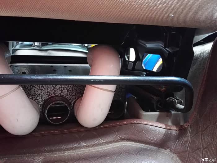 主驾驶座椅下面的水暖风,14年12月份改的。从后往前拍摄