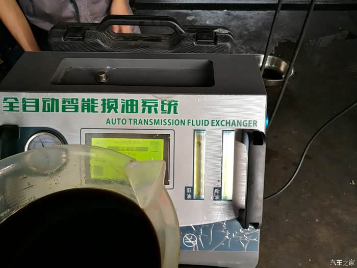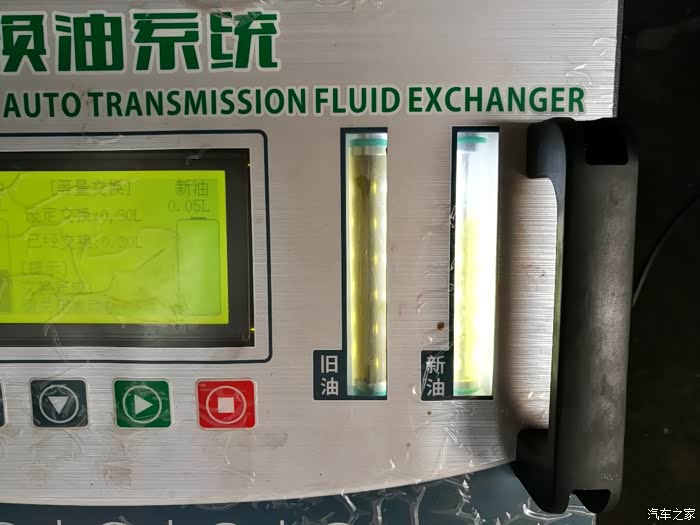 然后往变速箱注入4升新油进行循环清洗,循环机上显示就8升了。
