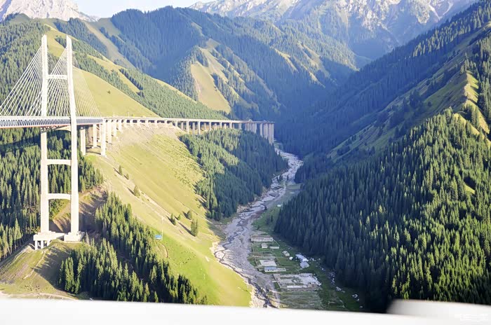 离开赛里木湖,前往霍尔果斯,果子沟大桥,汽车之家这图片传得很头痛,还有航拍照片,上不了