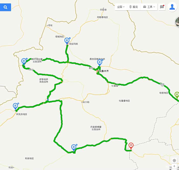 这是本次自驾新疆路线,重点是新疆,青海甘肃四川路线就不画了