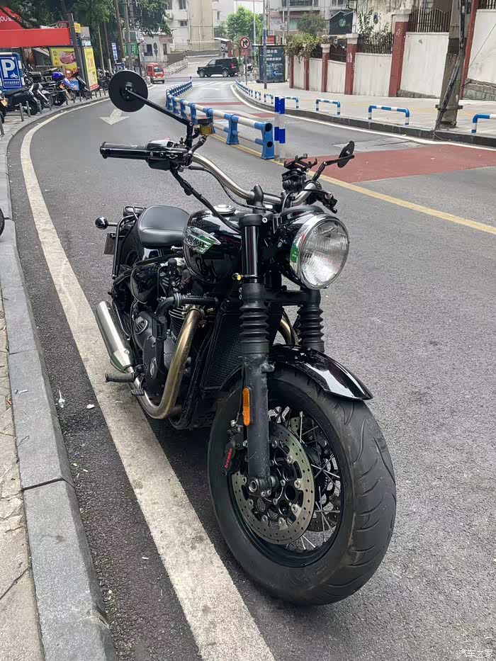 bobber轴距长,又是单座,后面其实看着有点下坠,加了个货架抬高点视觉效果,尽量让整体动线看起来平些,当然原厂一字把会看起来更好,但是也要兼顾舒适性啊,这个是我最折中的选择