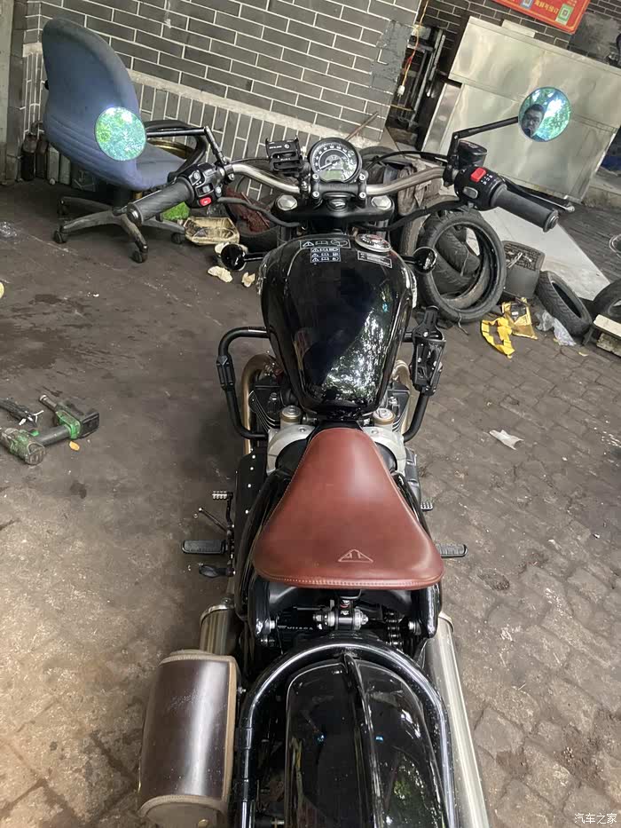 改了抬高的分离把,坐垫也重新定做了,一辆不适合自己体型的摩托拿来作甚