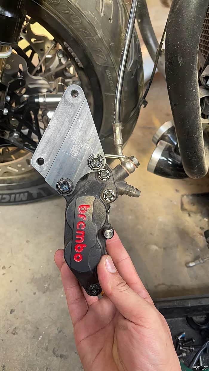 上泵也要升级, brembo的17磅上泵,原车油门总成的开关和油壶是一体的,且主流上泵都是针对22把径的龙头,所以还找到发烧友3D打印的一个总成,完美解决上述难题,搞出来这玩意的人真是太天才了。