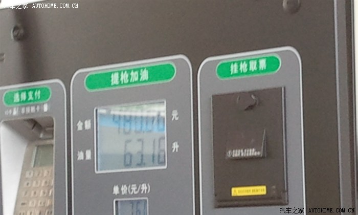 64升的油箱接车后在旁边的加油站加了63.16升,算算你的新车里有多少油