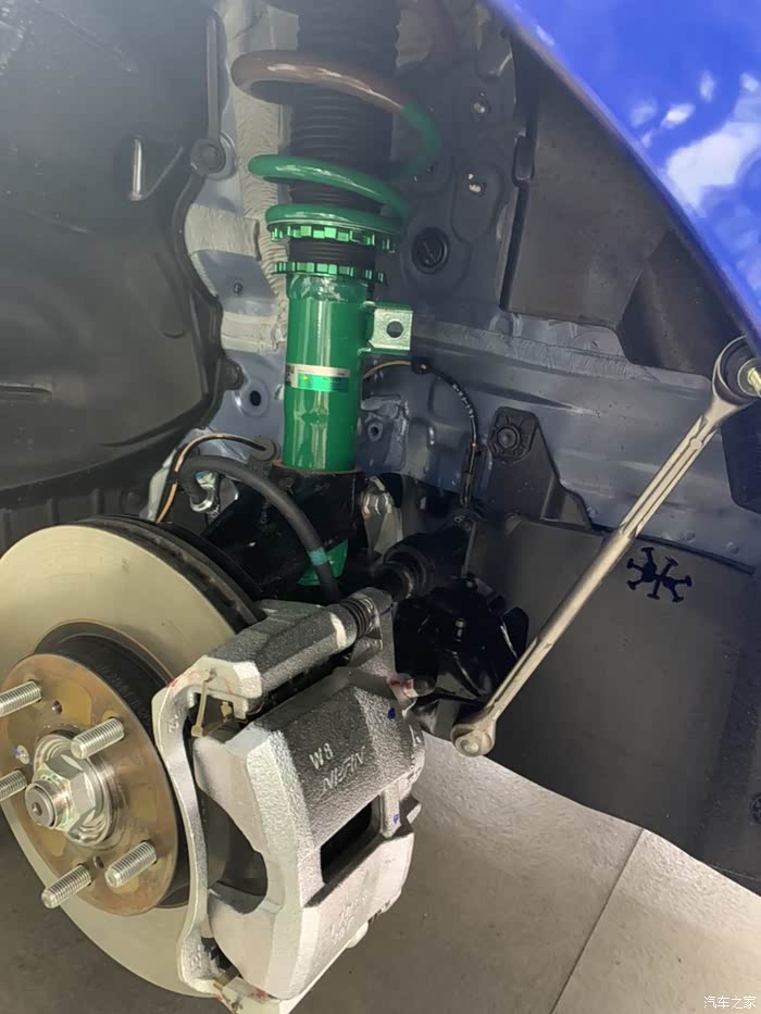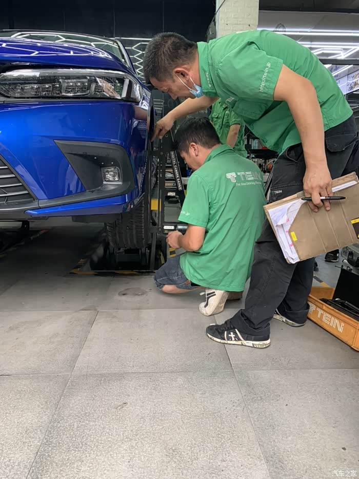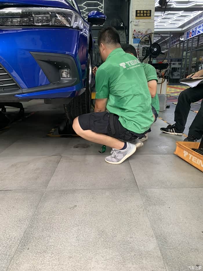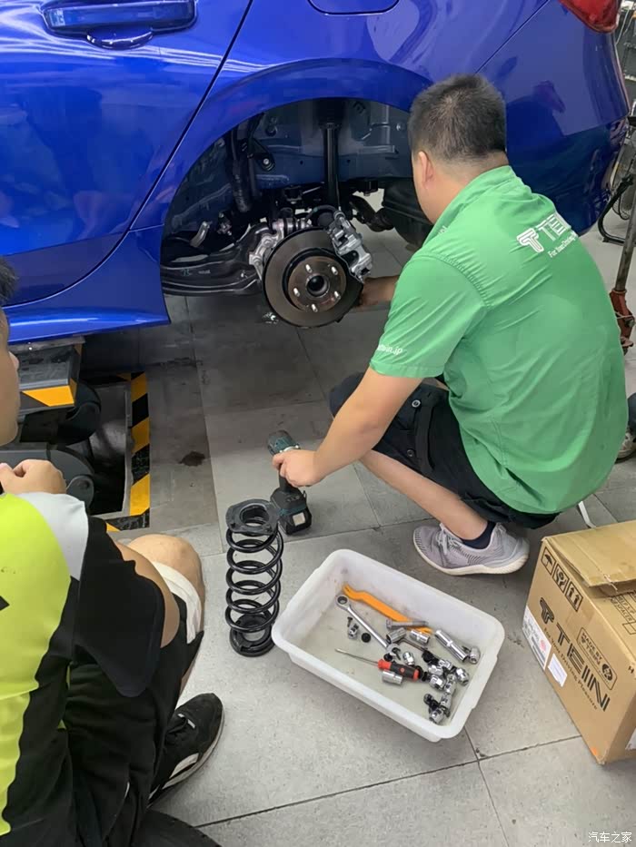 心心念念的避震终于有消息了,今天Tein厂家来店里测试了,师傅们很专业,量完数据后就直接开拆了,这个是拆下来原车的,还是很新,上面也有生产日期,这个测试的避震是厂家先拿十代的直接过来对的,目前看来应该跟10代的是一样的,师傅敲来敲去,装避震果然是个辛苦活呀,很期待最终效果。