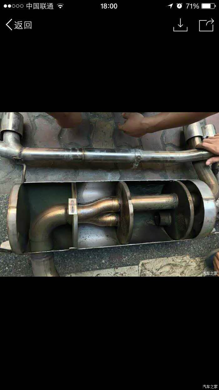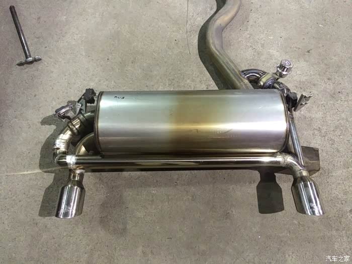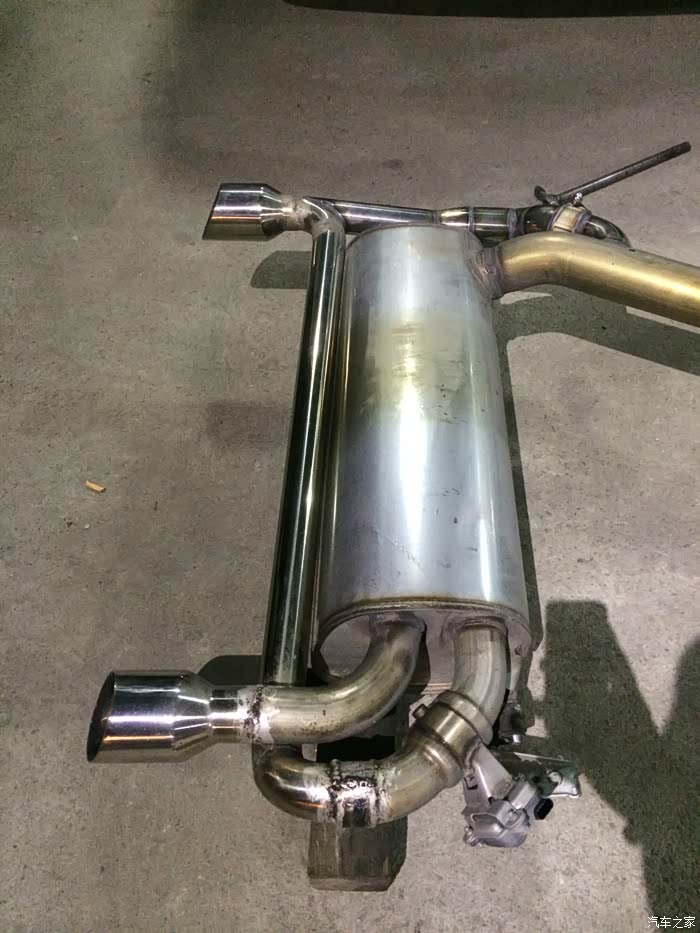 上面这个图就是有车友打开P排以后的内部照片。可以看到他在里面的2个管子,一个直接出去接到阀门,一个是在鼓内回压,它也是通过阀门在直通和鼓内回压之间切换的,所以理论上按我的方法改装好后,原厂320、328排气就变成了P排了。区别在于P排它的结构是在尾段里面,而我的结构是在尾段的外面。