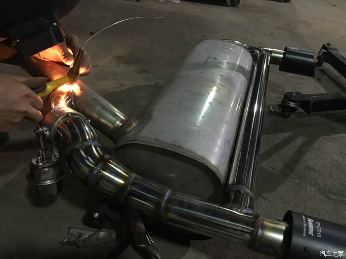 右边,位置都没有问题后,就可以吧排气拿下来满焊焊死了。