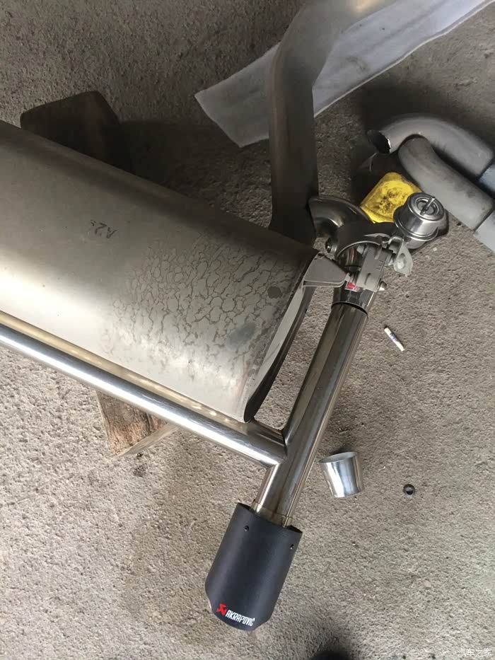 首先第一部就是把,原厂的尾喉割下来,注意原厂的电子阀门别割哦。