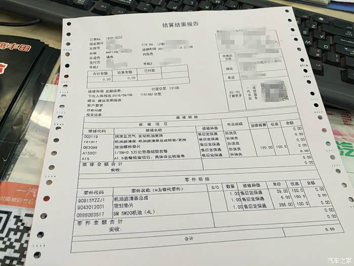 最后售后小姑娘领着看下换的旧件,交接下手续,签字画押,消费0元