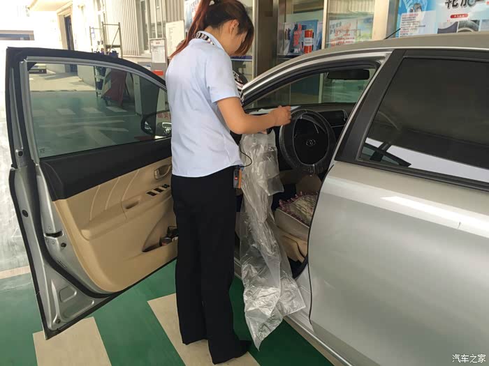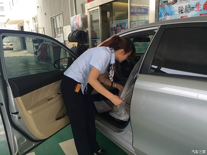售后小姑娘很热情的,给登记下,然后给座椅,方向盘套上袋子,脚垫也铺了纸