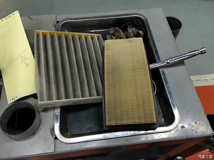这期间小师傅问我滤芯需要换么 给吹了吹还有点脏了,我说我有,小师傅就说帮我换上,我看了看后备箱悲剧了发现没带