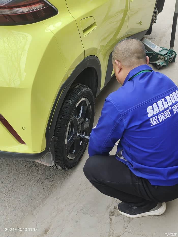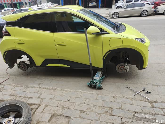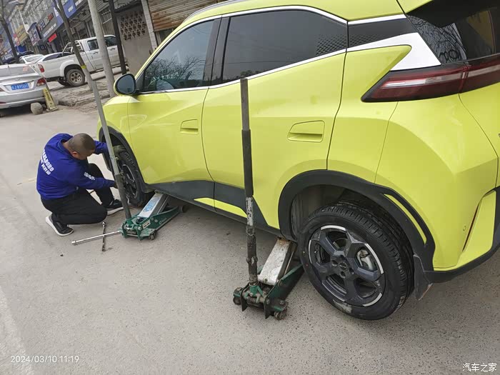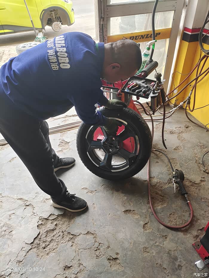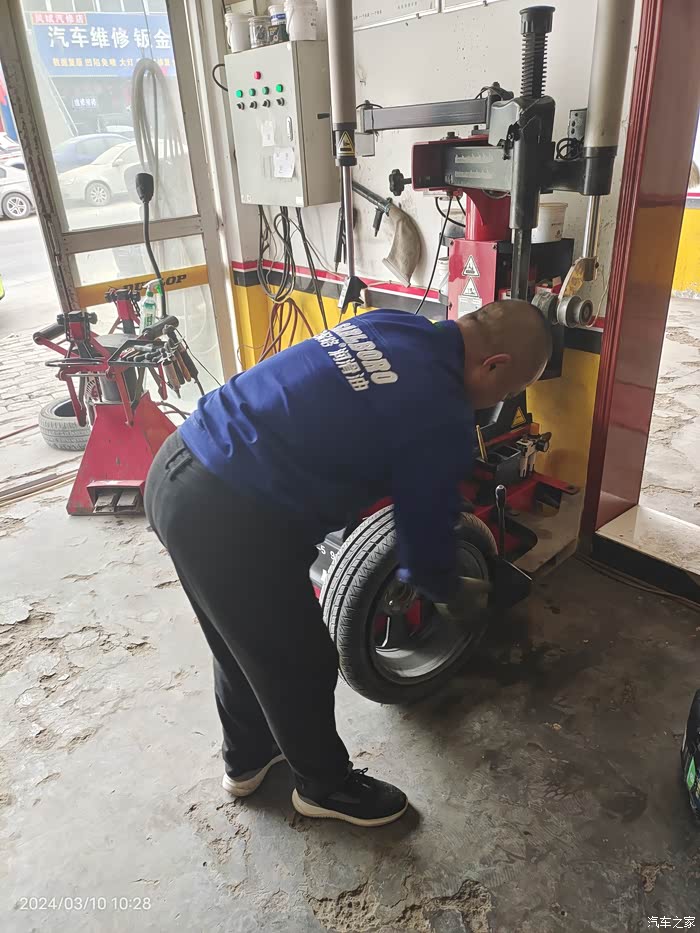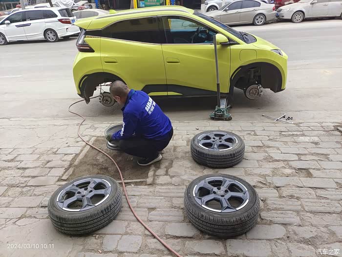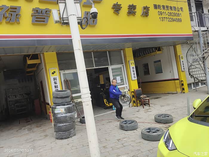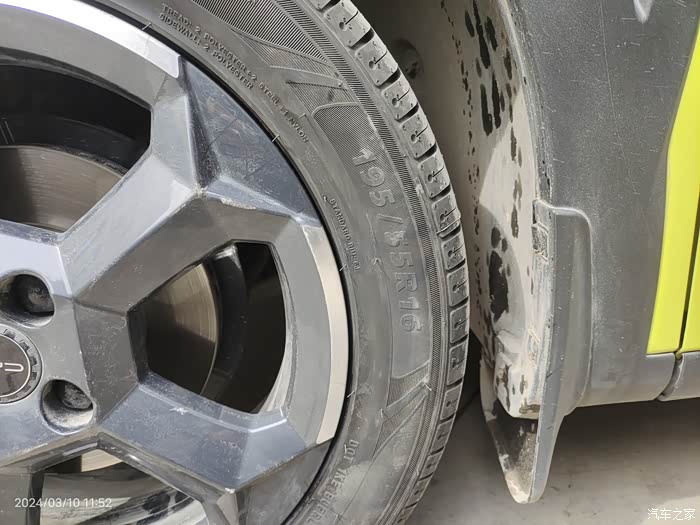 海鸥的小脚看着不舒服有段时间了,也看到论坛里有人换了,于是我更加想换掉它,175改195的。担心前轮会蹭轮圈,老板先安装了一只旧的195/55R16轮胎,打方向试了一下,没问题可以安装,于是把四个轮子全卸了。