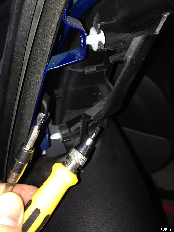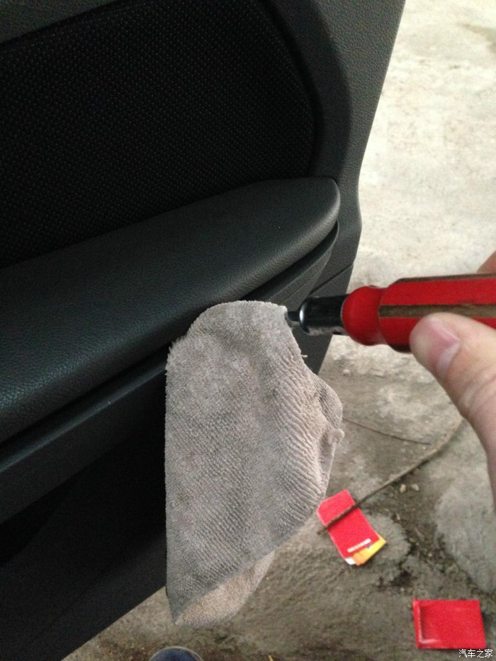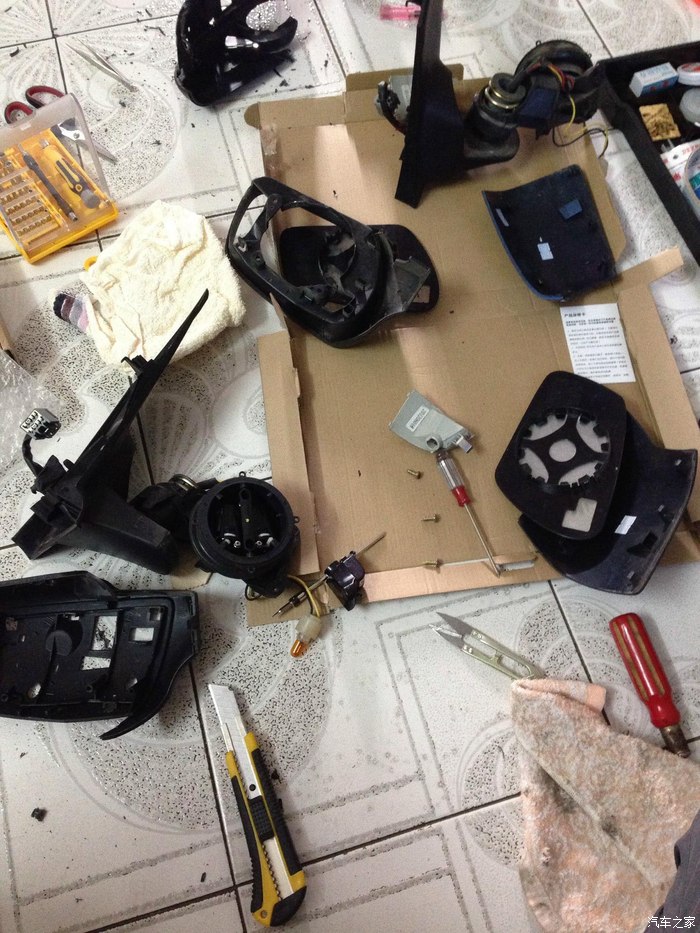 先撬下后视镜盖板, 用一字螺丝刀包裹眼镜布,就可以轻松搞定,一点难度木有