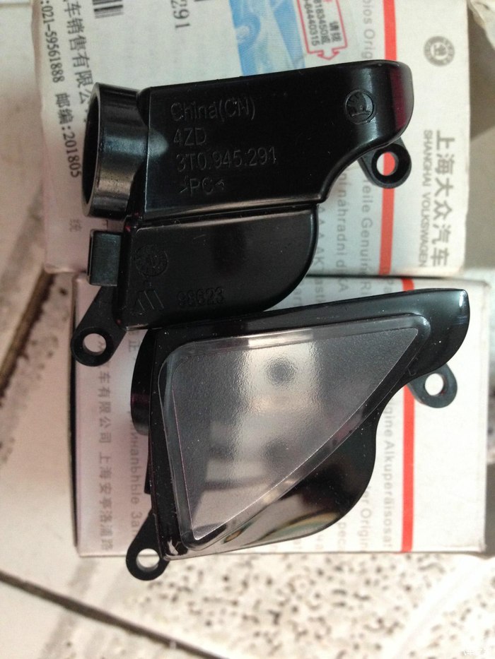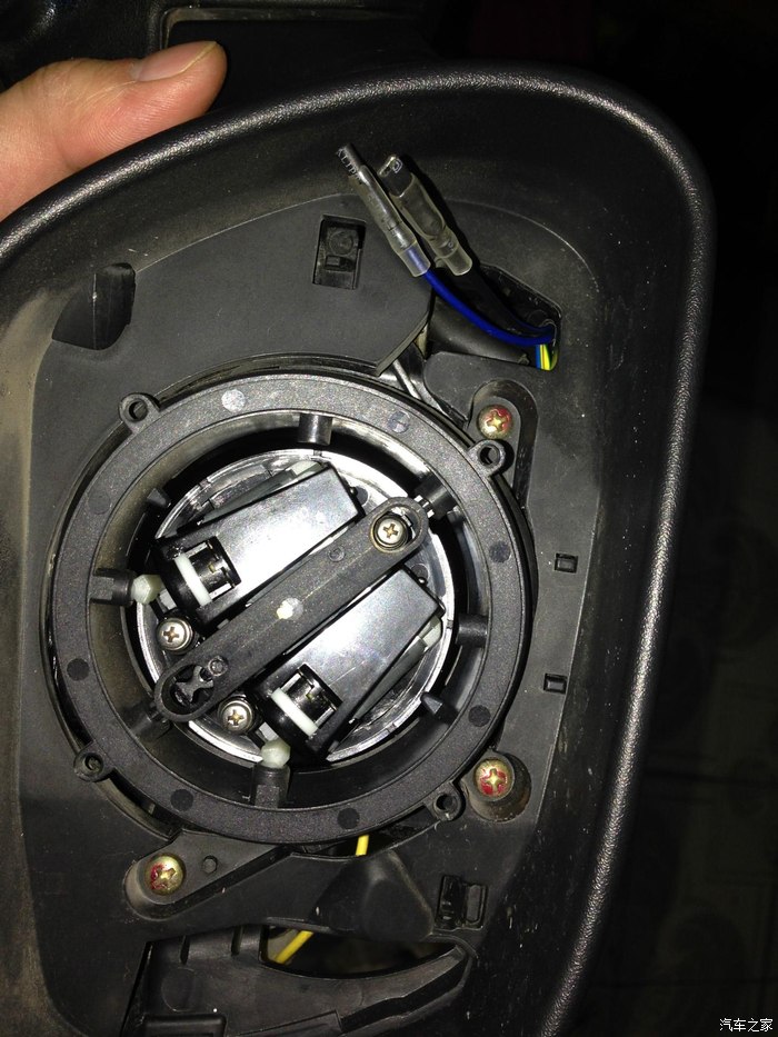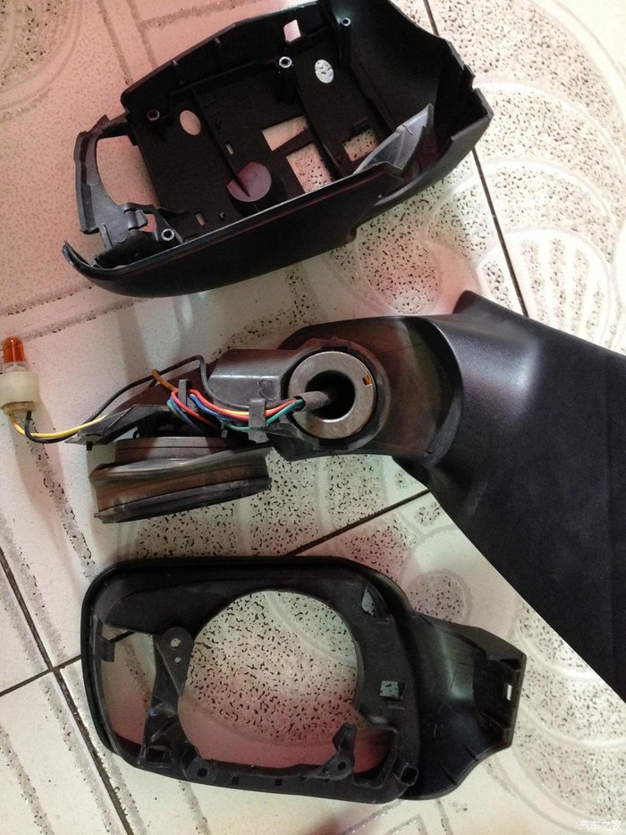 昨晚太匆忙,没有整理线束,先把该插的插头都插好 然后把新后视镜上自带的转向灯接上电,由于是增加的功能没有插口可用,这次要破线了,心痛。接好重新测试一下后视镜 转向灯 都OK。。安装其他塑料件完毕。。展示一下,,哈哈
