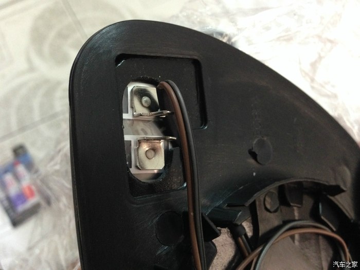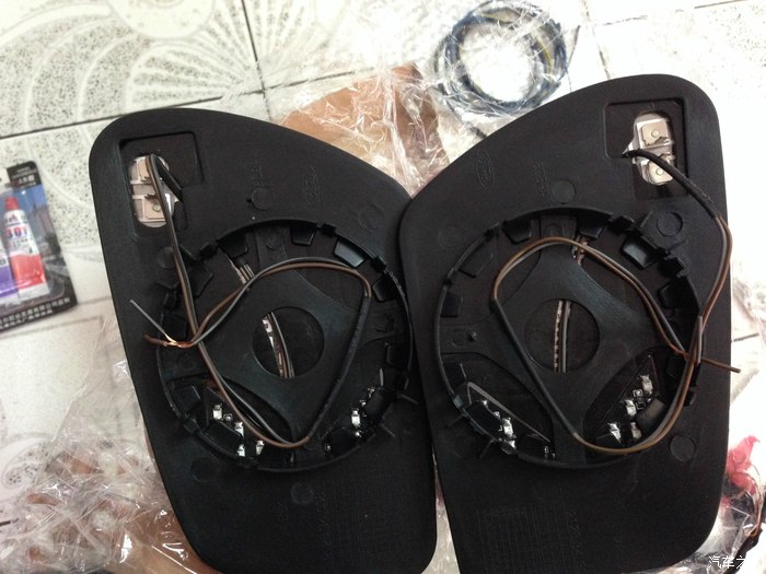左右两边都加工完成 镜片插入电加热线束 卡回镜座 ,后视镜总成重新安上车,后视镜前挡先不着急装,回头还有好东西,偶是低调的主,你懂的