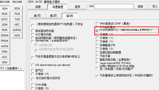 先点下面read from XXX 读取数据,然后分别把DDM和PDM中后视镜加热勾选,其他参数勿修改,之后write to XXX即可。